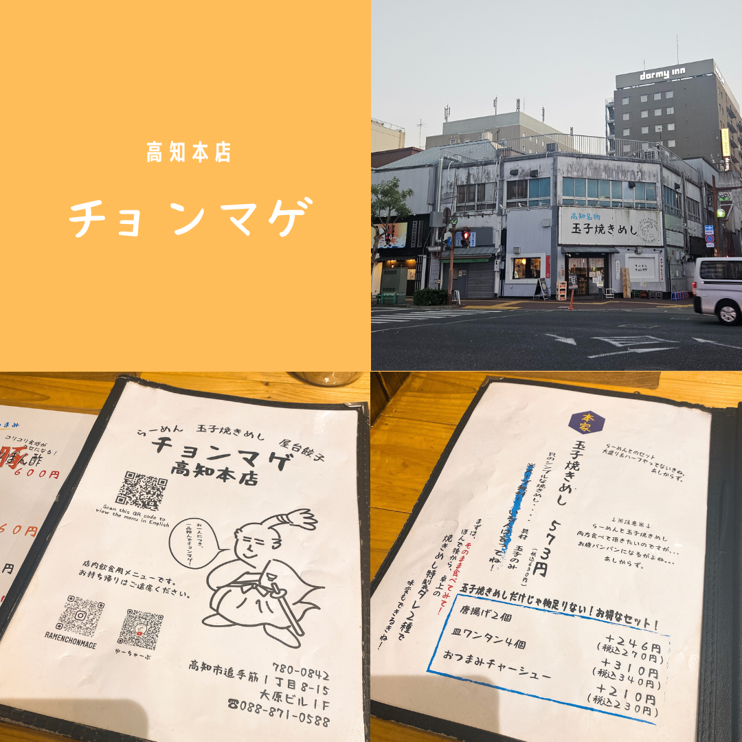 こんにちは!四万十自動車学校の森です。今回紹介するのは高知市大手筋にあります、らーめんチョンマゲ高知本店です。ここのおすすめは定番メニューの玉子焼きめし。具材は玉子のみと、まさにシンプルイズベスト!!みんなが虜になる味です!最近は卒業後に高知市内で一泊や観光をして帰る子も増えていますので、機会があれば是非足を運んでみて下さい。